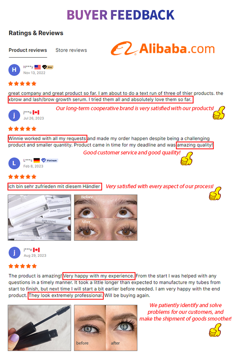 We have 10 years of experience, focusing on the development and sales of high quality eyelash growth serum, mascara, eyebrow gel, eyebrow color and other products. We also offer custom services, from tube